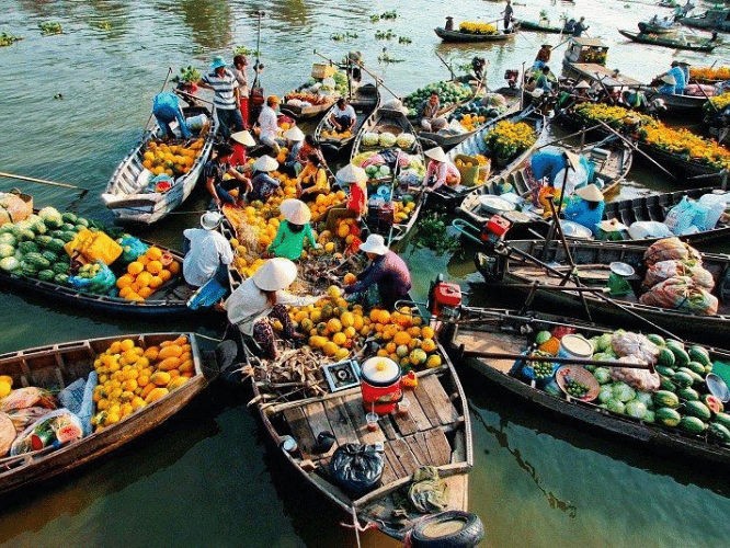 Tại chợ nổi, quý khách có thể trực tiếp mua những loại trái cây tươi ngon từ những chiếc ghe đầy ắp hàng hóa, mang đến trải nghiệm mua sắm thú vị giữa lòng sông. Tiếp đó, đoàn sẽ ghé thăm lò sản xuất hủ tiếu và các loại khô đặc sản – những món quà độc đáo mà bạn có thể mang về làm quà cho gia đình và bạn bè. Sau khi tham quan, quý khách trở về khách sạn để dùng bữa sáng và làm thủ tục trả phòng.